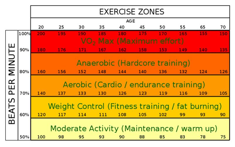 Even though it is the most frequently used formula, as well as the most commonly referenced among heart rate training zones, the formula lacks a reference to a standard deviation, and many well-respected physical health and fitness professionals do not view the formula as a good predictor of MHR. Furthermore, MHR often varies greatly between individuals, even when they are of similar age and training experience in the same sport. Even so, MHR “predicted” by the above formula is often used to prescribe exercise training heart rates, and is useful reference information. As a reminder, exercise intensity is calculated at approximately 60-70% of maximum heart rate is recommended as the ideal range to maximize fat burning. See figure below for additional information.